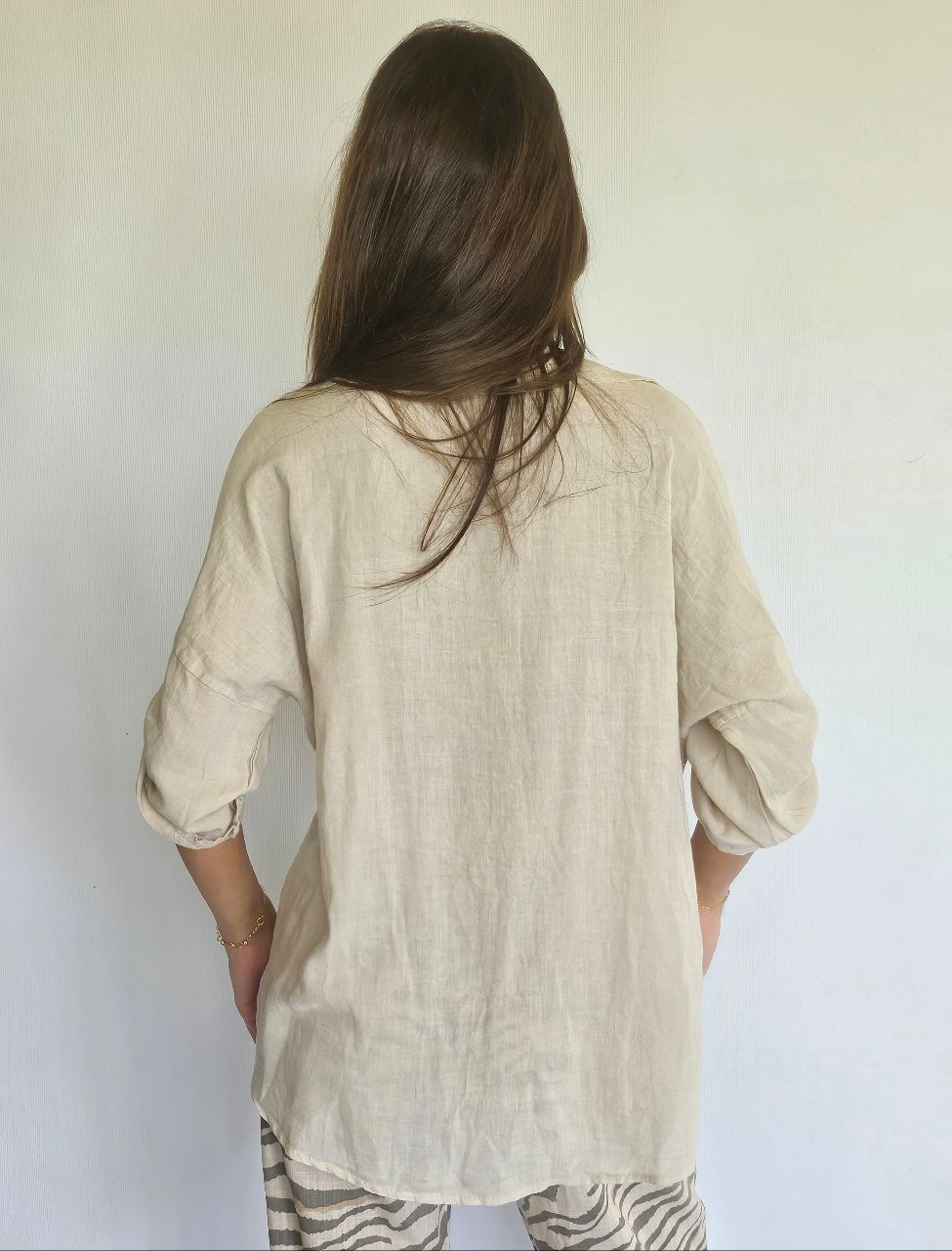Linen Beige Shirt with Gold