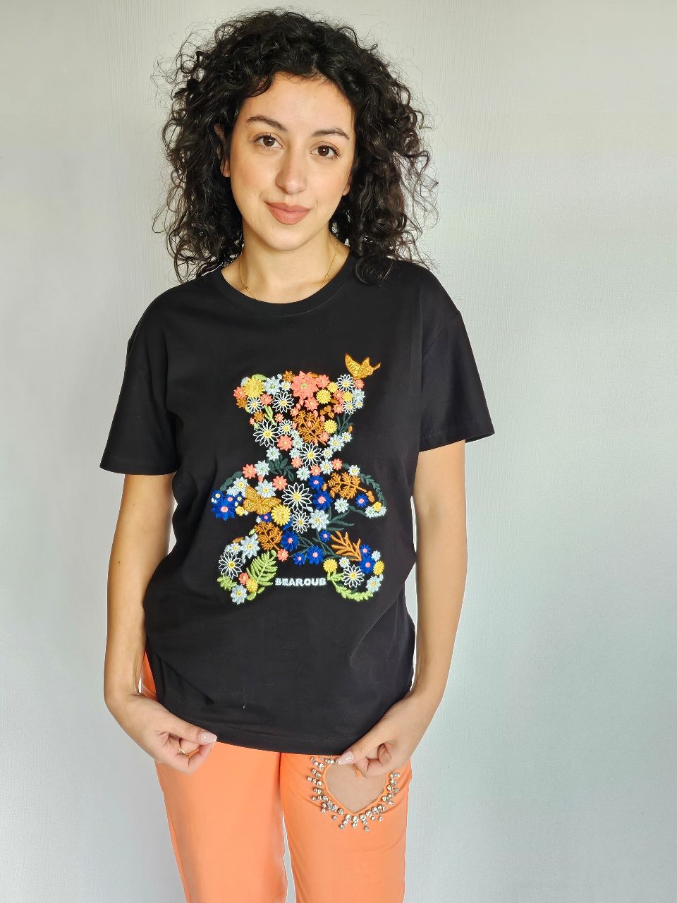 Black T-Shirt with 3D Flowers (Out Of Stock)